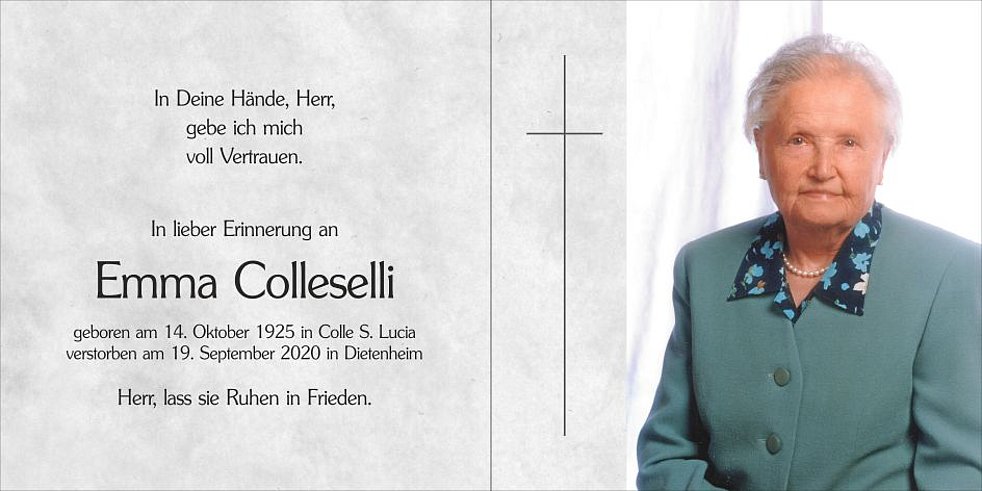 Den Abschiedsgottesdienst für unsere liebe Emma feiern wir am Dienstag, dem 22. September, um 14 Uhr in der Pfarrkirche von Dietenheim.
