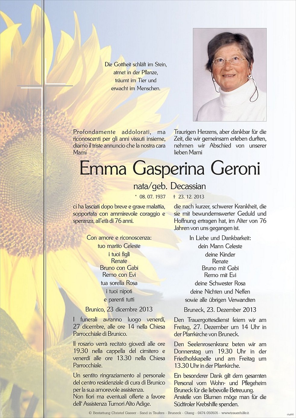 Anstelle von Blumen möge man für die Südtiroler Krebshilfe spenden.