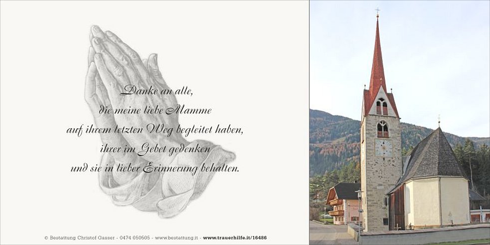 Ein besonderer Dank gilt dem Hausarzt Dr. Martin Kofler und den Sprengelschwestern.