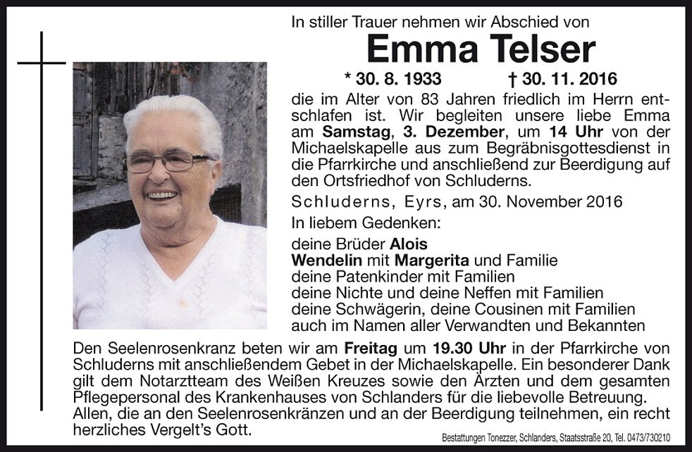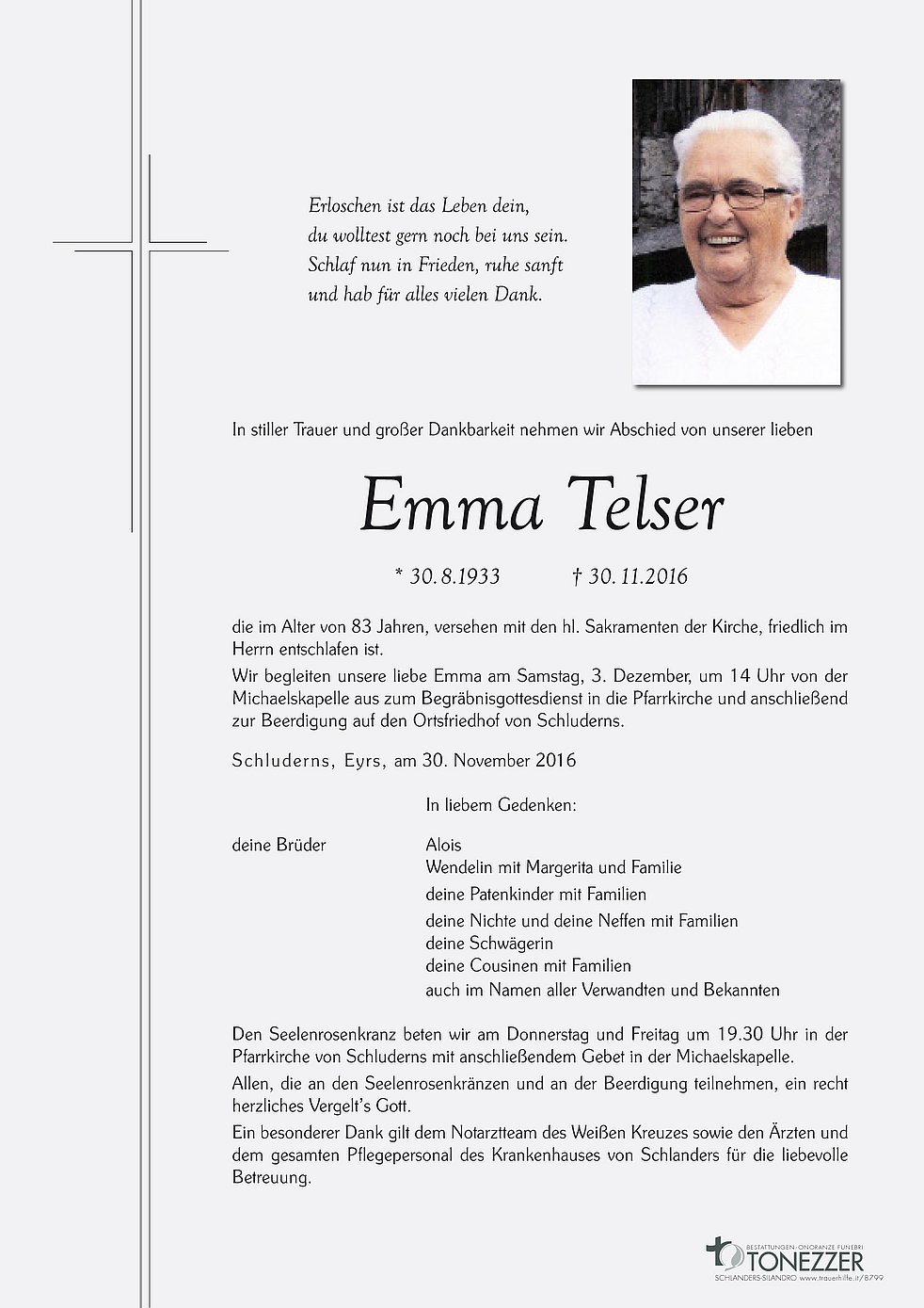 Wir begleiten unsere liebe Emma am Samstag, 3. Dezember, um 14 Uhr