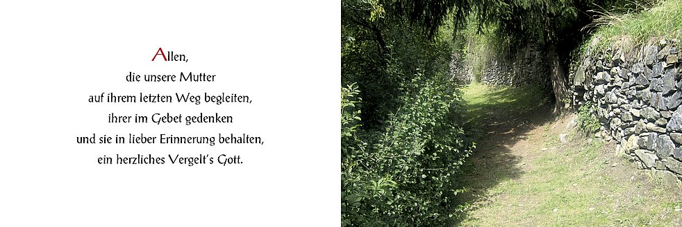 Gedankt sei dem Pflegepersonal des Sanatorium, Wohnbereich 1, für die liebevolle Betreuung, sowie allen die an der Verabschiedung teilnehmen.