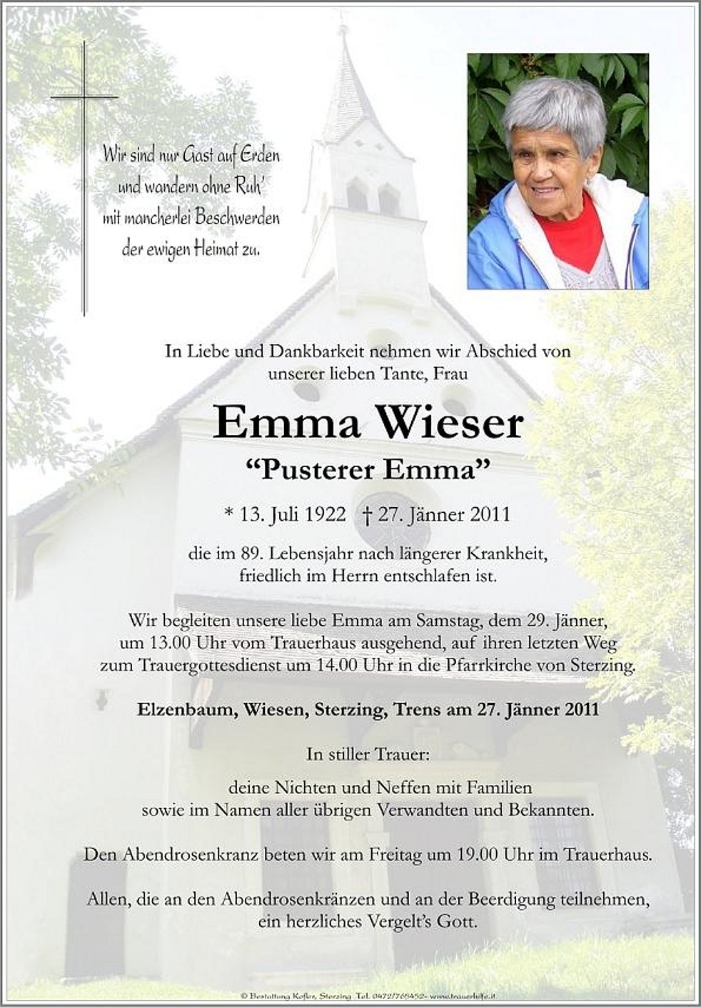 Wir begleiten unsere liebe Emma am Samstag, dem 29. Jänner, um 13.00 Uhr