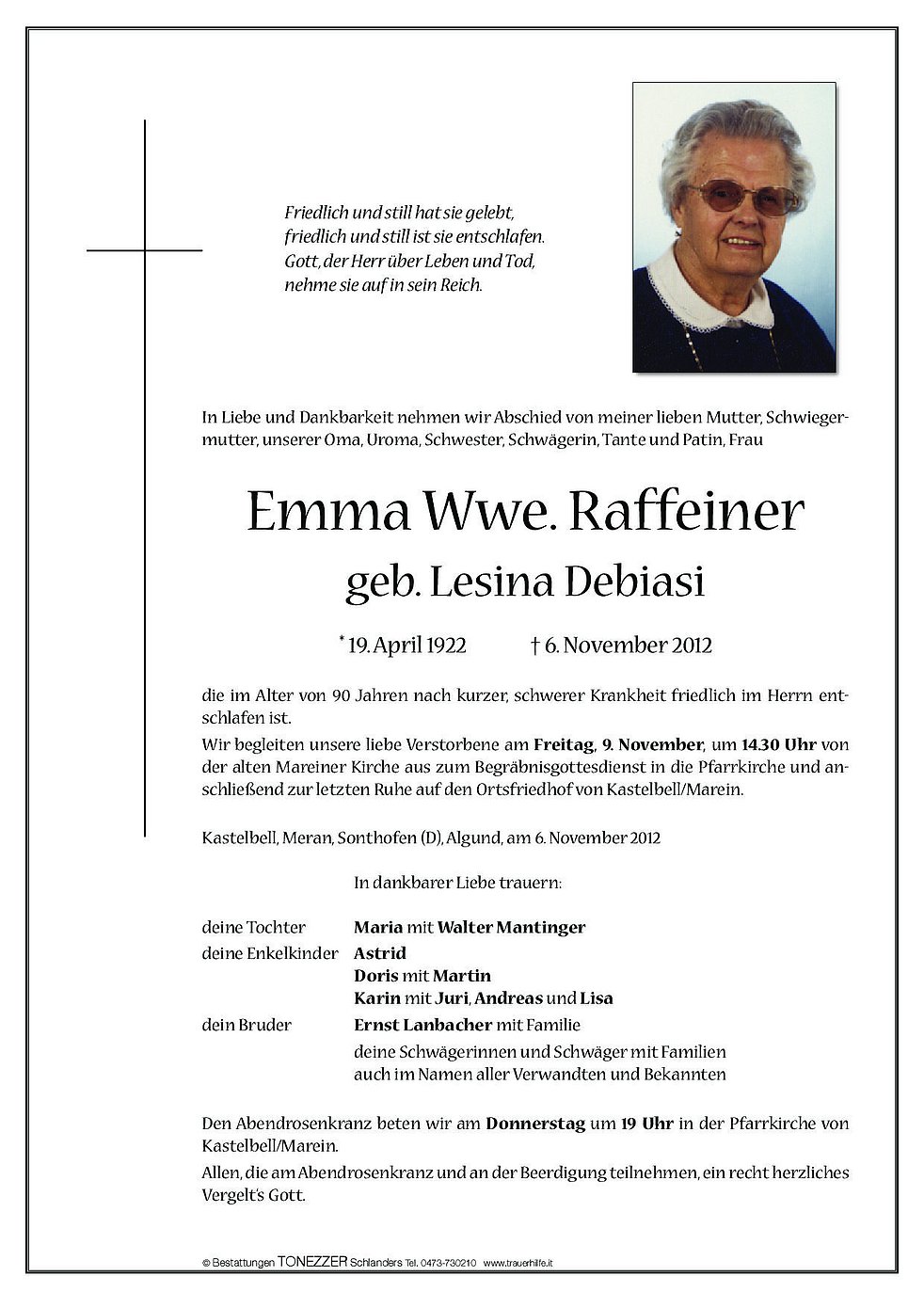 Wir begleiten unsere liebe Verstorbene am Freitag, 9. November, um 14.30 Uhr von der alten Mareiner Kirche aus zum Begräbnisgottesdienst in die Pfarrkirche und anschließend zur letzten Ruhe auf den Ortsfriedhof von Kastelbell/Marein.