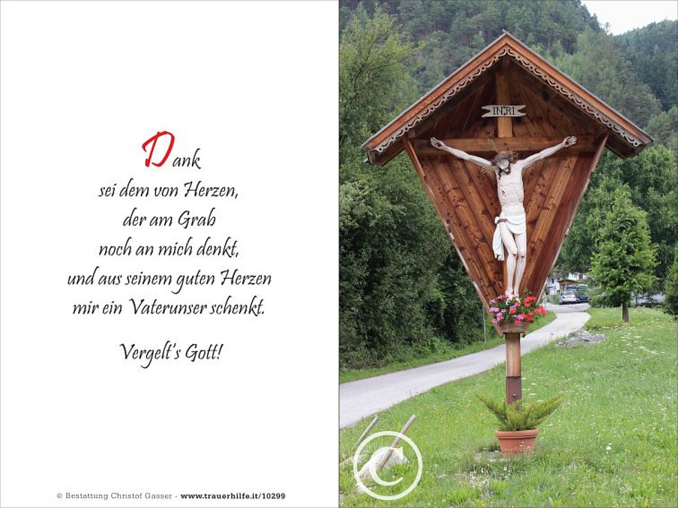 Den Seelenrosenkranz beten wir am Montag und am Dienstag um 19.30 Uhr im Trauerhaus sowie am Mittwoch um 14 Uhr in der Friedhofskapelle von Obervintl.