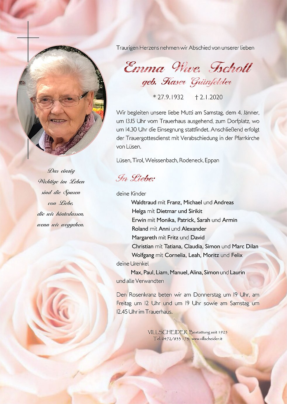 Trauerfeier: 04.01. - 14:30 Uhr Lüsen
