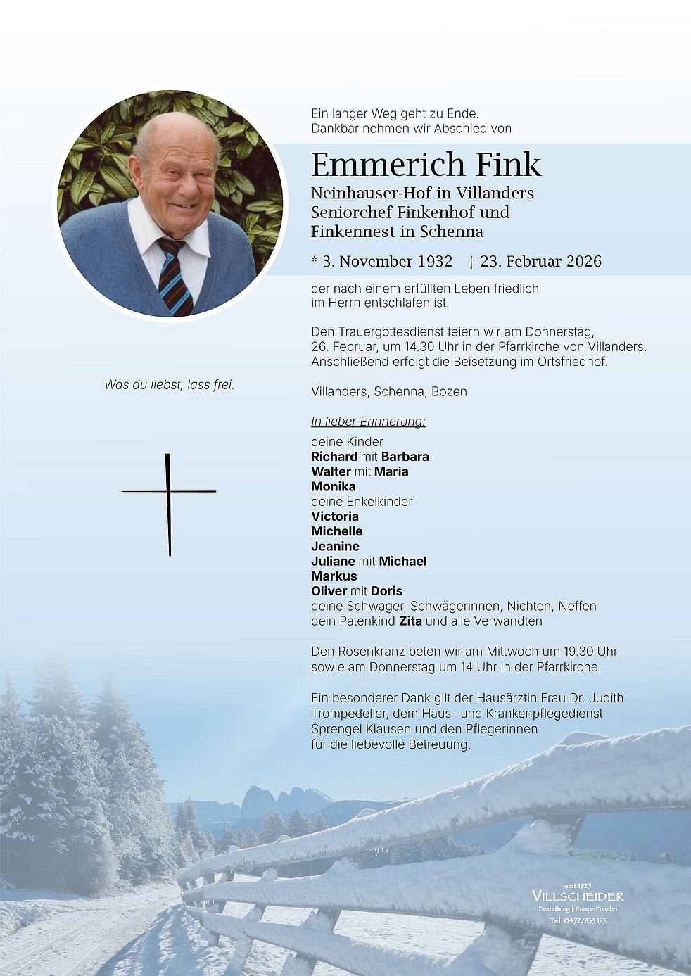 Begräbnisgottesdienst: 26.02. - 14:30 Uhr Villanders