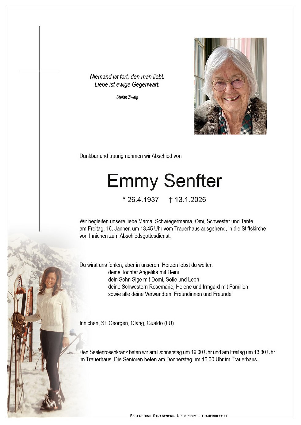 Trauerfeier: 16.01. - 14:00 Uhr Innichen