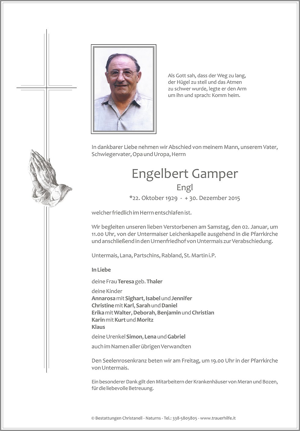 Wir begleiten unseren lieben Verstorbenen am Samstag, den 02. Januar, um 11.00 Uhr von der Untermaiser Leichenkapelle ausgehend, in die Pfarrkirche und anschließend in den Urnenfriedhof von Untermais zur Verabschiedung.
