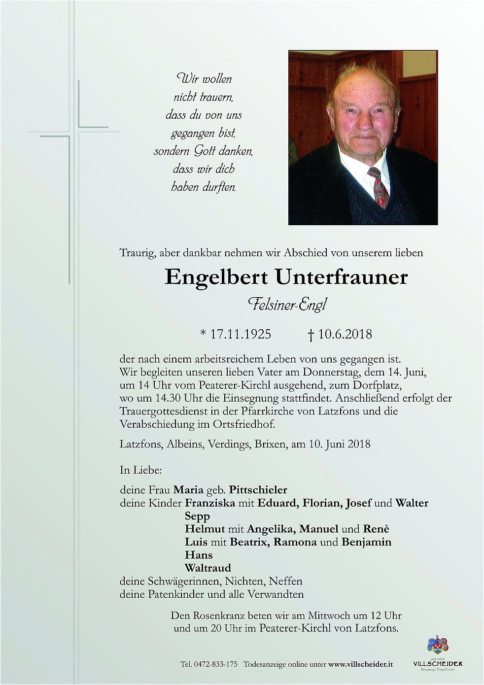 wo um 14.30 Uhr die Einsegnung stattfindet. Anschließend erfolgt der Trauergottesdienst in der Pfarrkirche von Latzfons und die Verabschiedung im Ortsfriedhof.