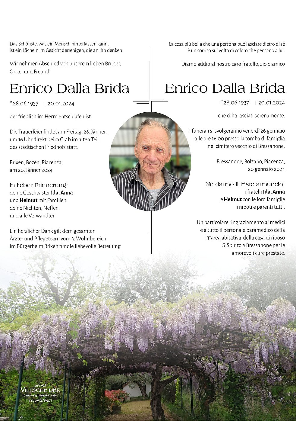 Trauerfeier: 26.01. - 16:00 Uhr Friedhof Brixen