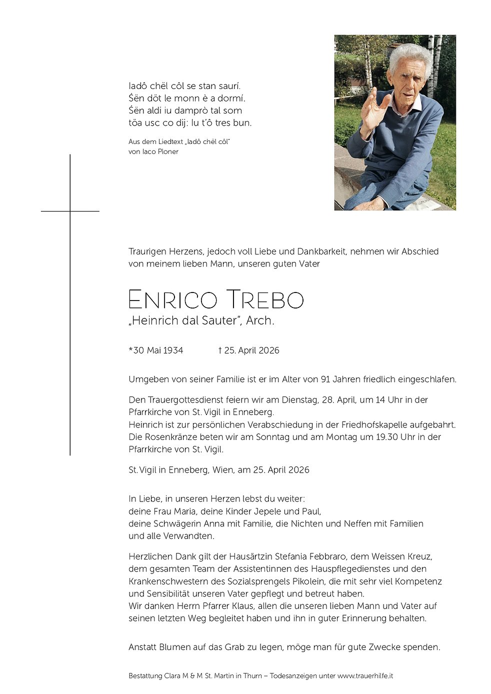 Verabschiedung: 28.04. - 14:00 Uhr St.Vigil in Enneberg