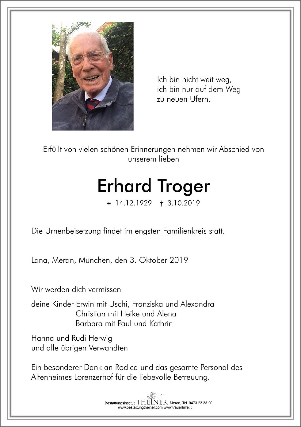 Lana, Meran, München, den 3. Oktober 2019