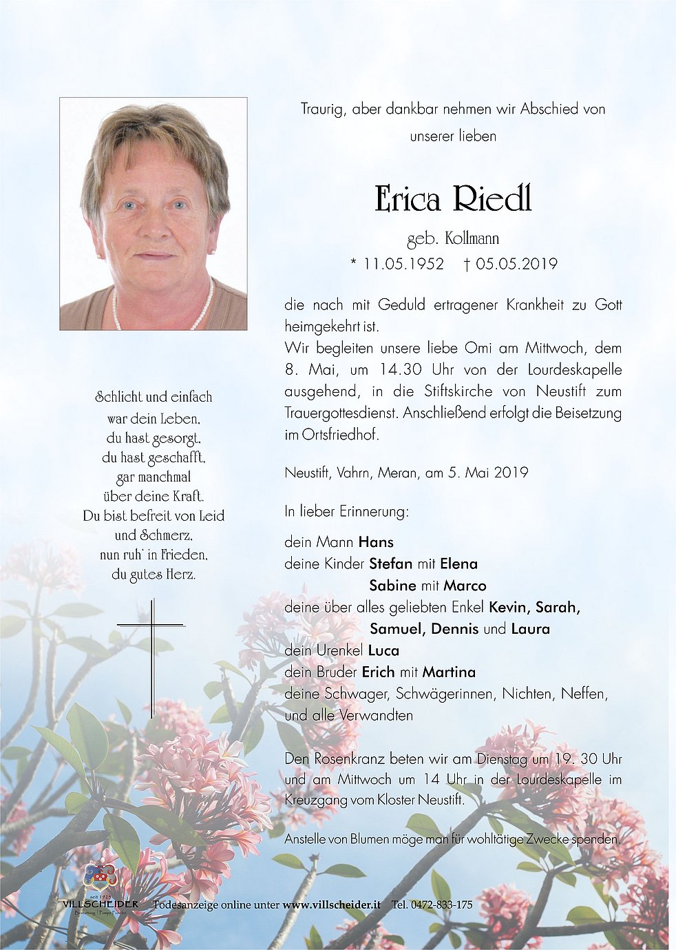 Liabe Erica, insre Zeit wor viel zu kurz, in herzlicher Erinnerung
