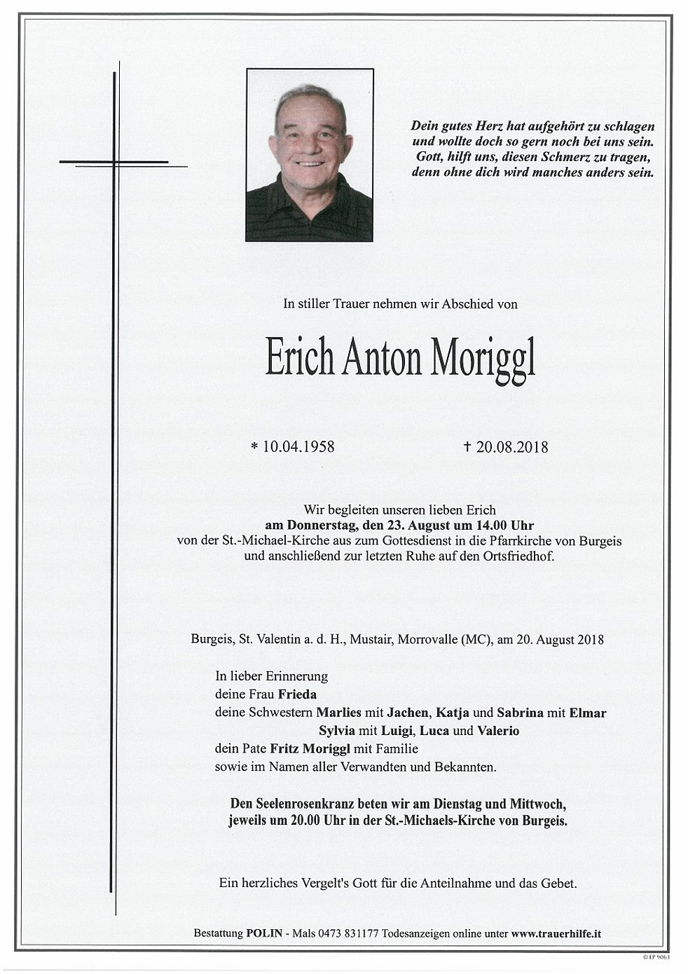 Burgeis, St. Valentin a. d. H., Mustair, Morrovalle (MC), am 20. August 2018