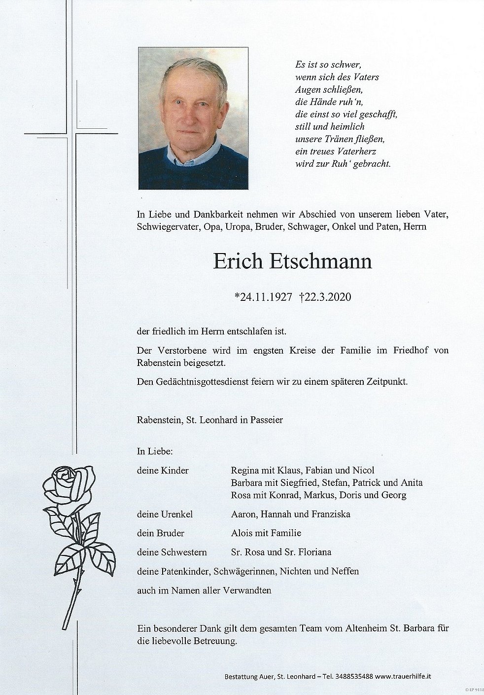 Der Verstorbene wird im engsten Kreise der Familie im Friedhof von Rabenstein beigesetzt.