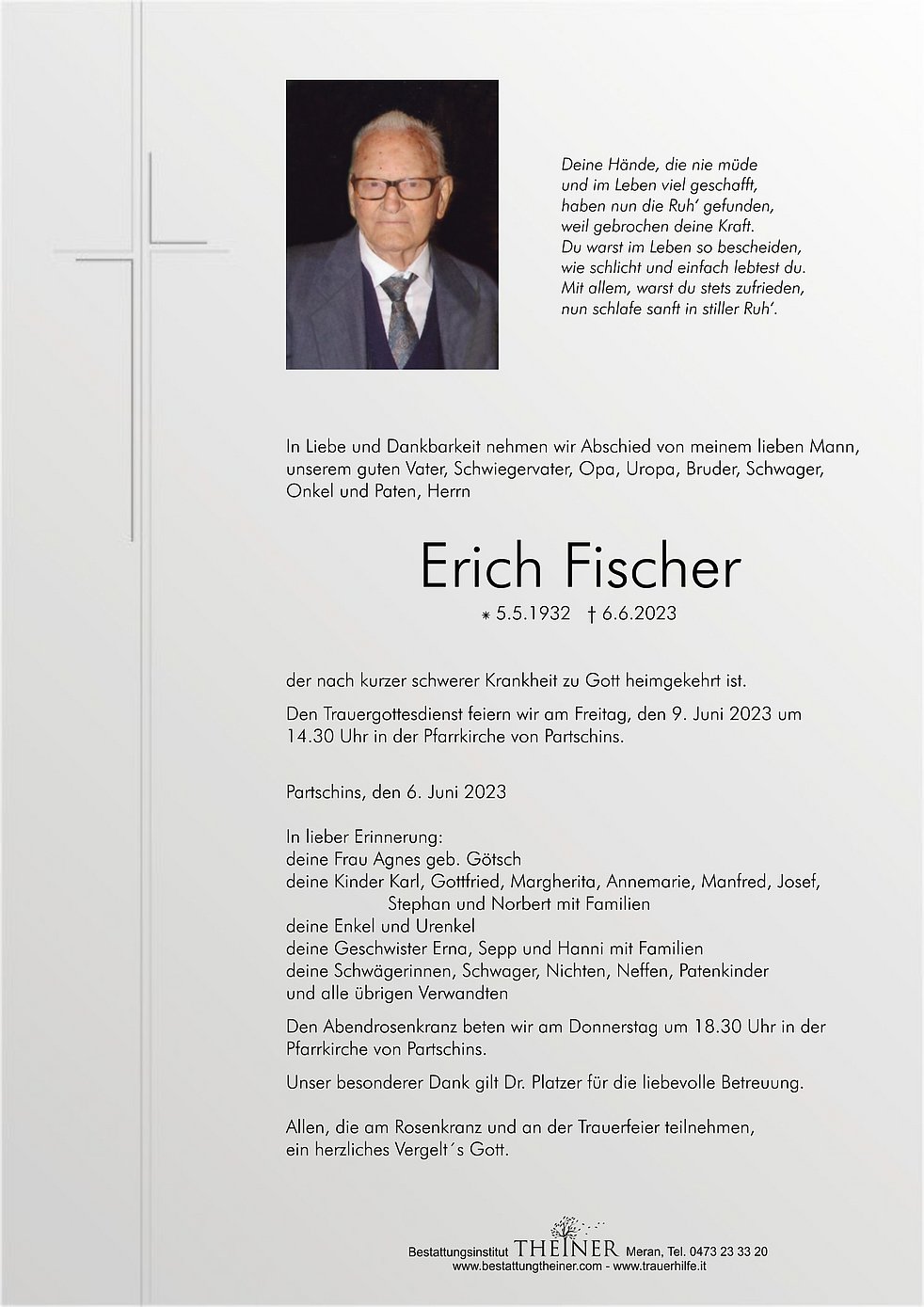 Den Trauergottesdienst feiern wir am Freitag, den 9. Juni 2023 um 14.30 Uhr in der Pfarrkirche von Partschins.