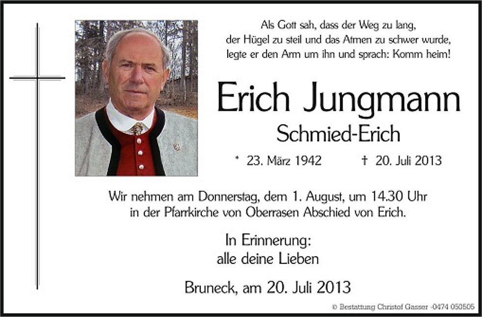 in der Pfarrkirche von Oberrasen Abschied von Erich.