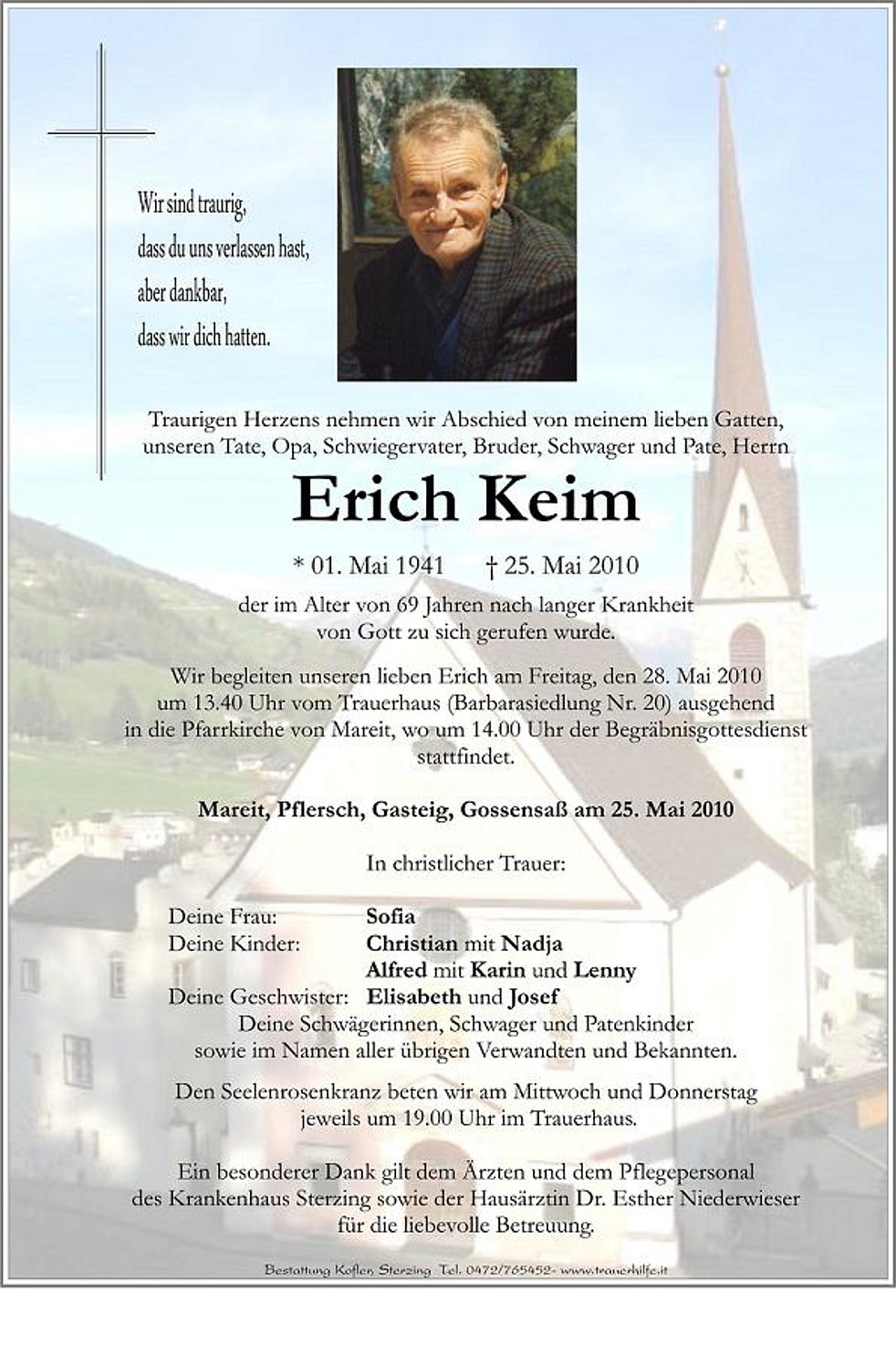 Wir begleiten unseren lieben Erich am Freitag, den 28. Mai 2010