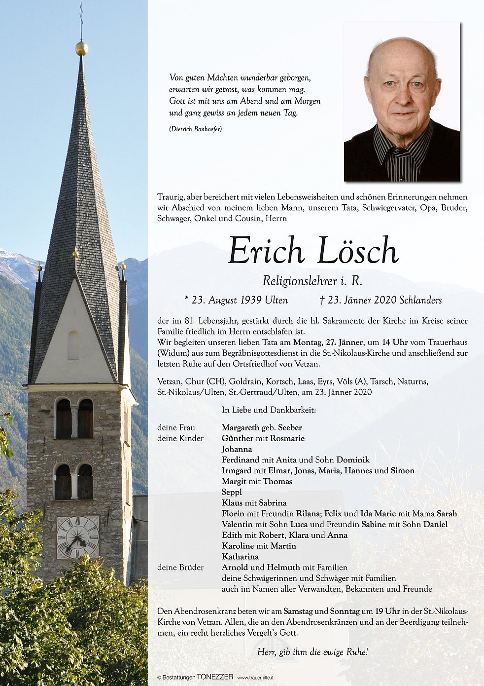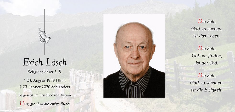* 23. August 1939 Ulten † 23. Jänner 2020 Schlanders