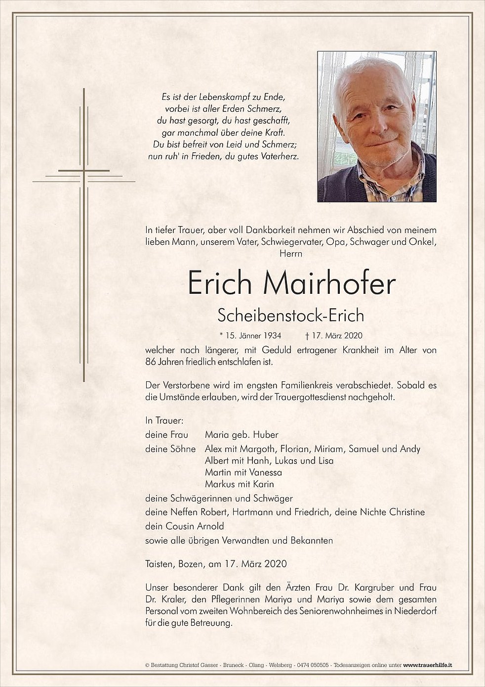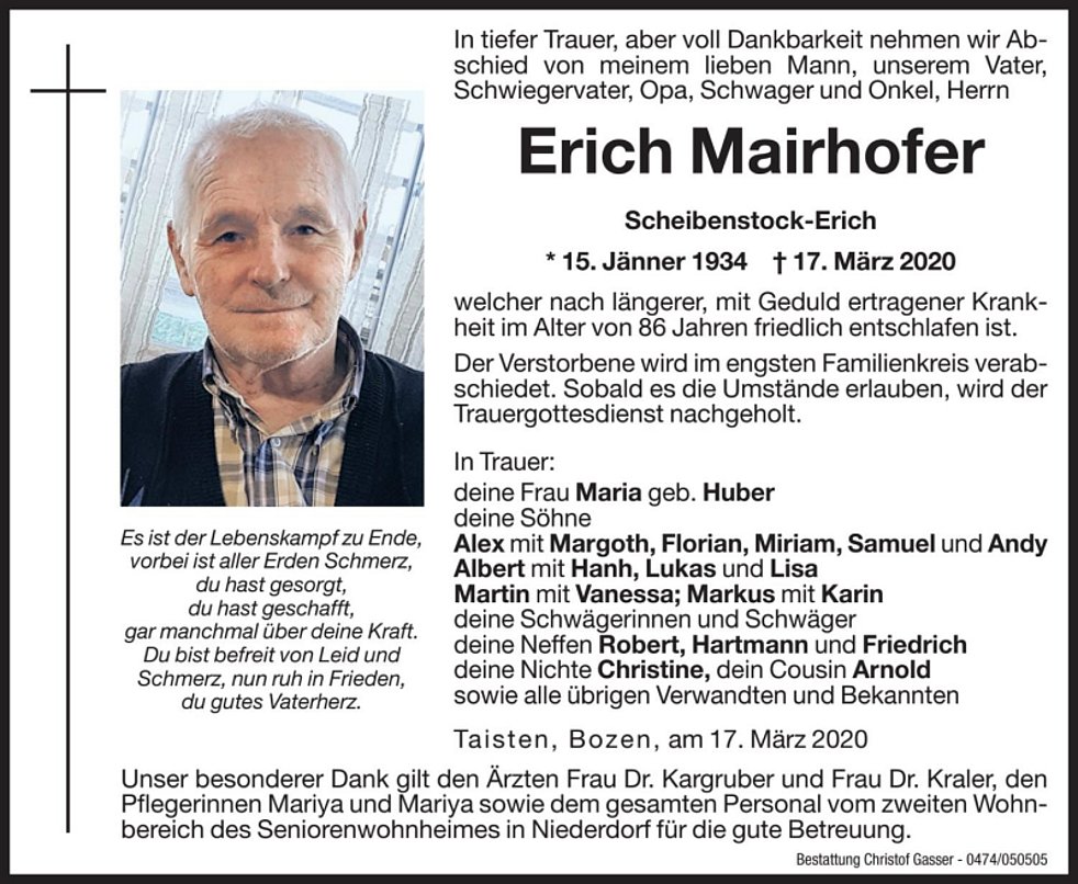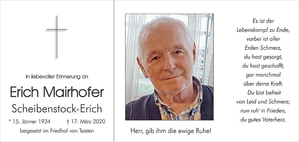 Unser besonderer Dank gilt den Ärzten Frau Dr. Kargruber und Frau Dr. Kraler, den Pflegerinnen Mariya und Mariya sowie dem gesamten Personal vom zweiten Wohnbereich des Seniorenwohnheimes in Niederdorf für die gute Betreuung.