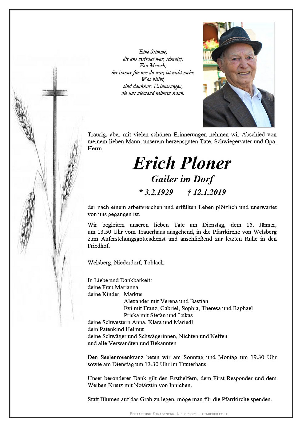 Wir begleiten unseren lieben Tate am Dienstag, dem 15. Jänner, um 13.50 Uhr vom Trauerhaus ausgehend, in die Pfarrkirche von Welsberg zum Auferstehungsgottesdienst und anschließend zur letzten Ruhe in den Friedhof.