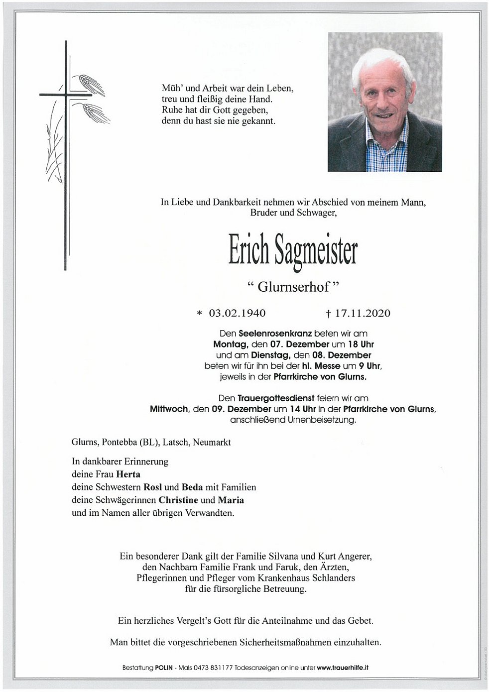 Ein herzliches Vergelt’s Gott für die Anteilnahme und das Gebet.