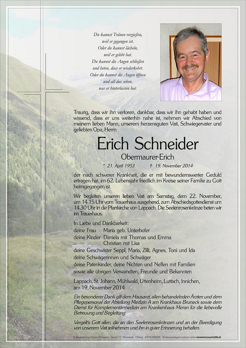 Do Erich wor a herzlicho und humorvollo Mensch und wersch ins olbm in guito Erinnerung bleibm. Inso aufrichtigis Beileid.