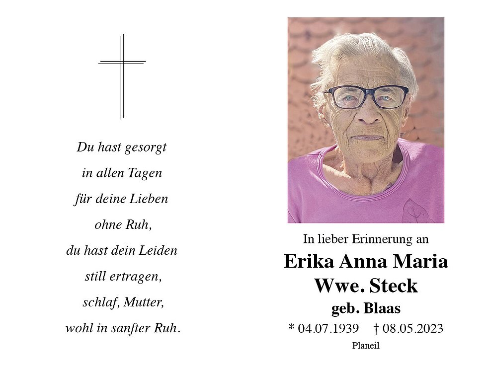 um 14 Uhr vom Trauerhaus aus zum Gottesdienst in die Pfarrkirche von Planeil,