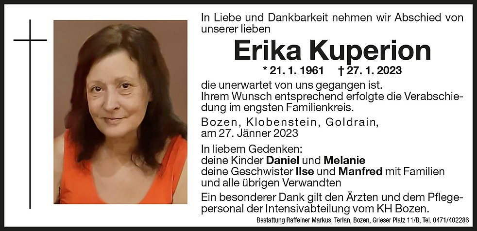 Ein besonderer Dank gilt den Ärzten und dem Pflegepersonal der Intensivabteilung vom KH-Bozen.