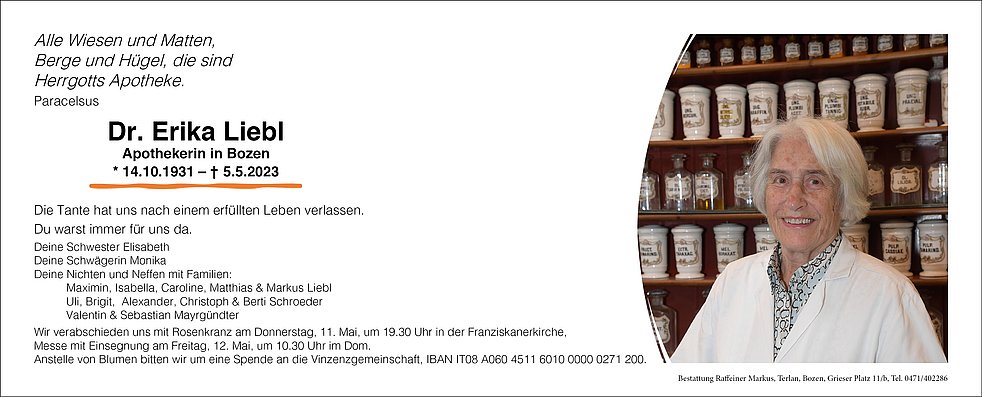 Sie war eine wunderbare Frau und Apothekerin mit großem Wissen.