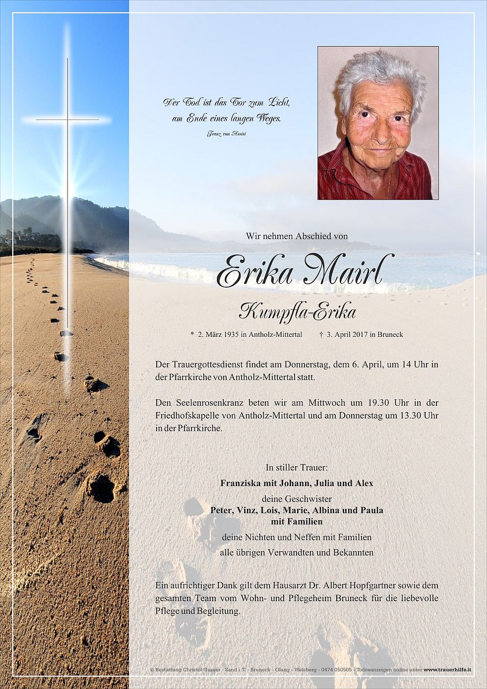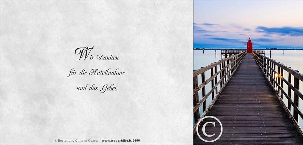 Ein aufrichtiger Dank gilt dem Hausarzt Dr. Albert Hopfgartner sowie dem gesamten Team vom Wohn- und Pflegeheim Bruneck für die liebevolle Pflege und Begleitung.