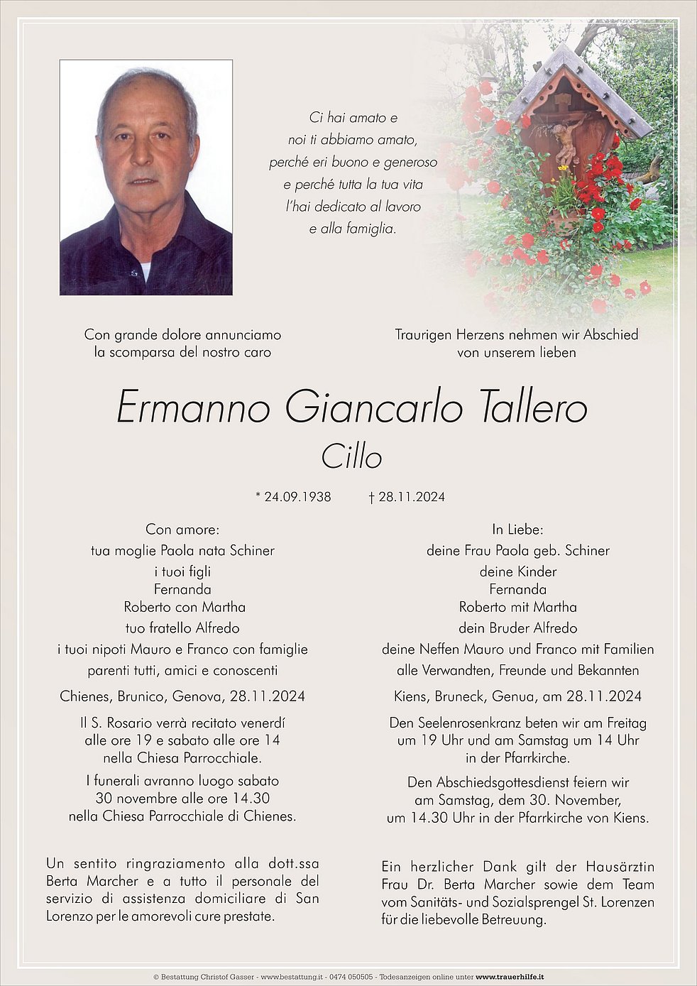 Berta Marcher e a tutto il personale del servizio di assistenza domiciliare di San Lorenzo per le amorevoli cure prestate.