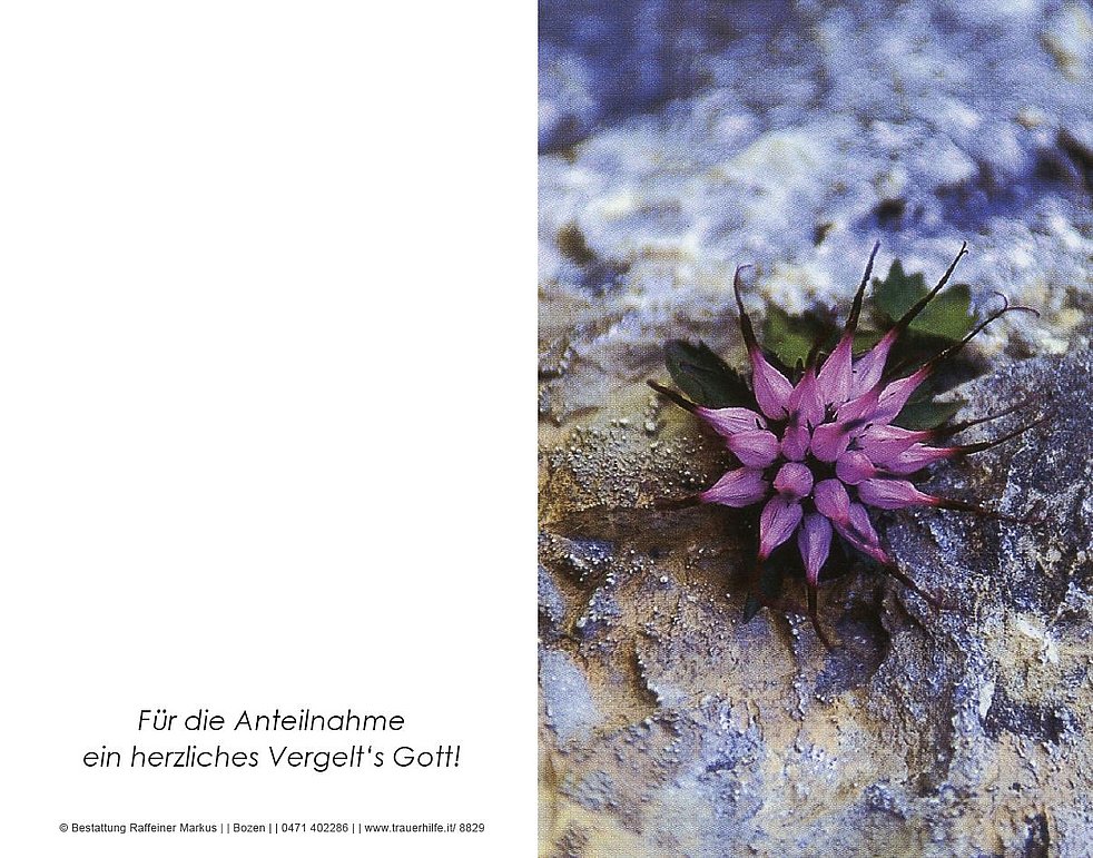 Wir danken dem Hausarzt Dr. Heinrich Schwarz, Dr. Paul Innerhofer, dem Pflegepersonal der ÖBPB Altershilfe Tschögglberg sowie den Ärzten und dem gesamten Pflegepersonal des Krankenhauses Bozen.