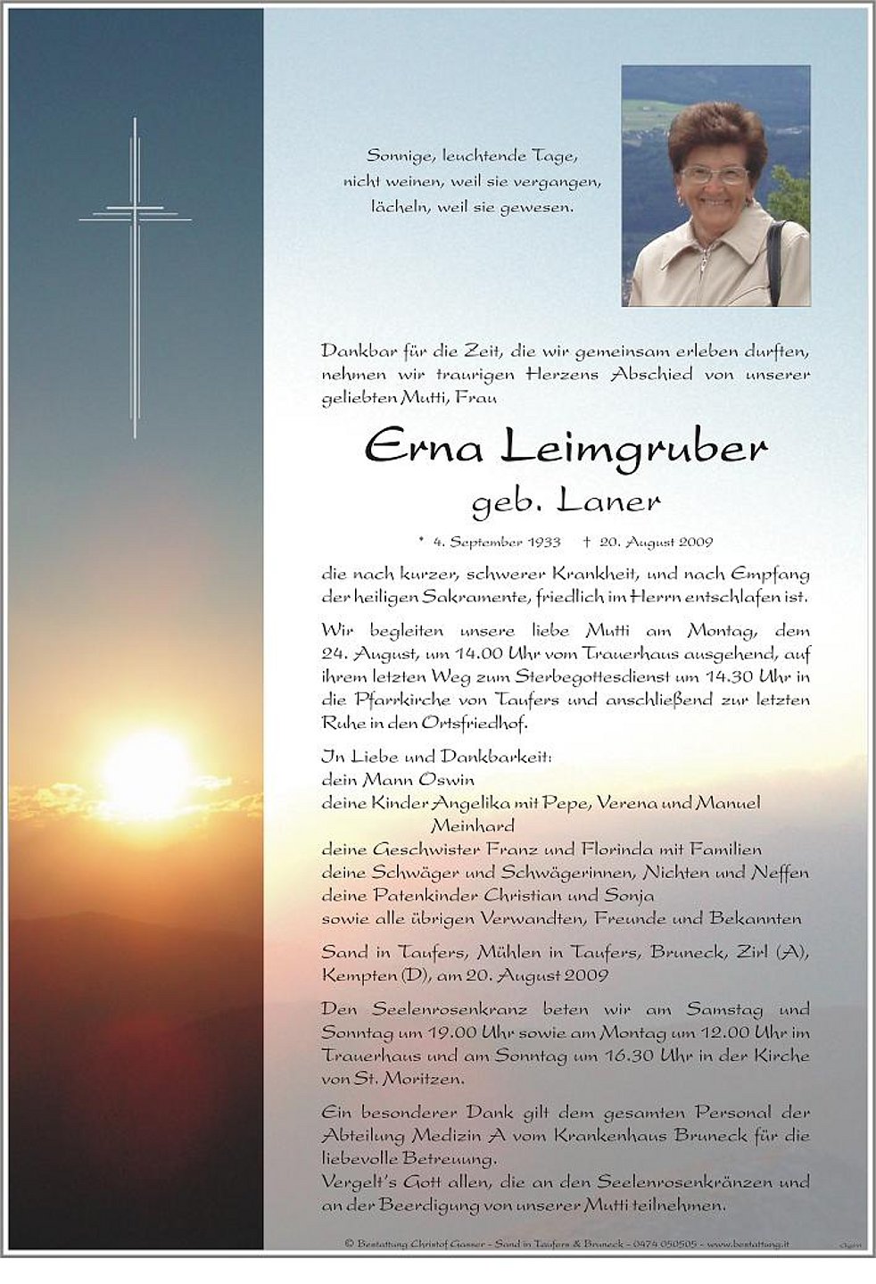 24. August, um 14.00 Uhr vom Trauerhaus ausgehend, auf ihrem letzten Weg zum Sterbegottesdienst um 14.30 Uhr in die Pfarrkirche von Taufers und anschließend zur letzten Ruhe in den Ortsfriedhof.