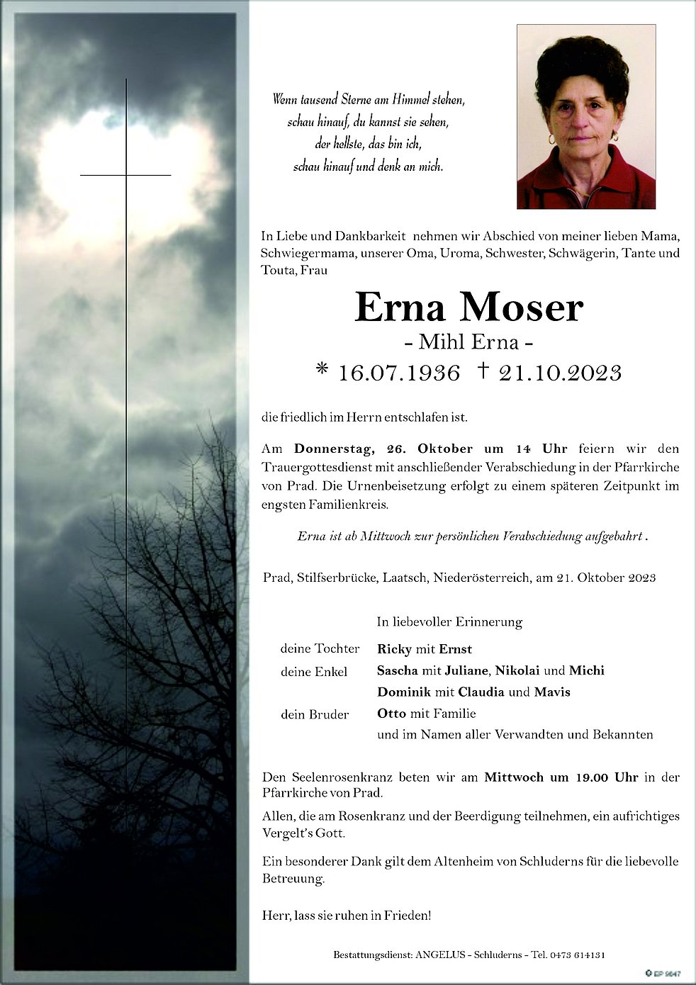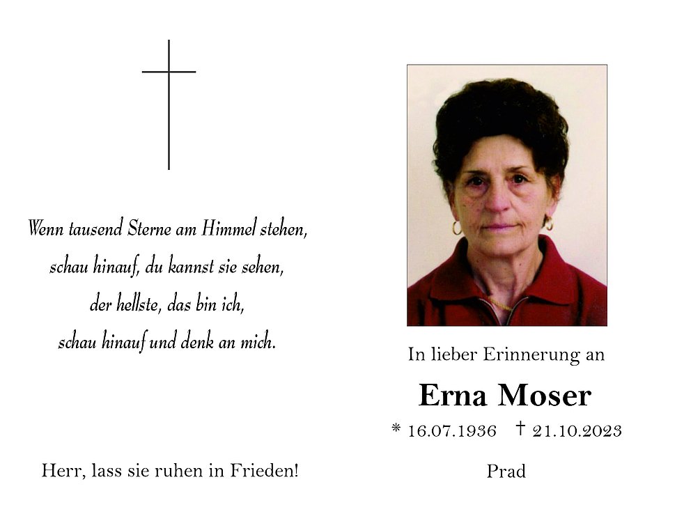 Trauerfeier: 26.10. - 14:00 Uhr Pfarrkirche von Prad