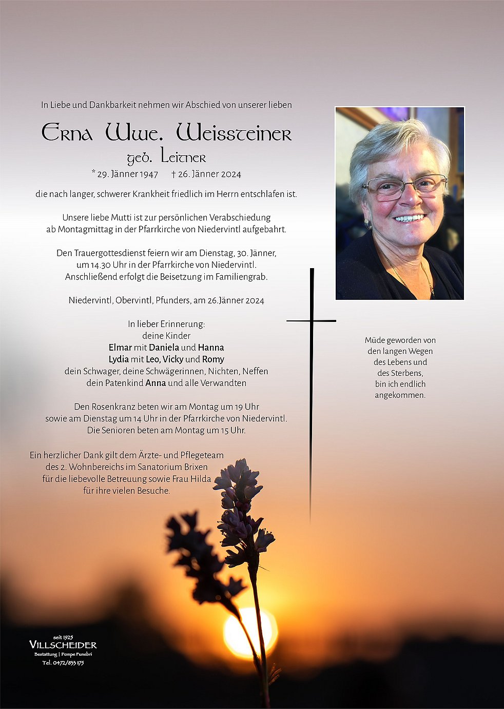 Zum Tode deiner lieben Mama unser aufrichtiges Beileid. Ruhe sanft und geborgen liebe Erna.♥️
