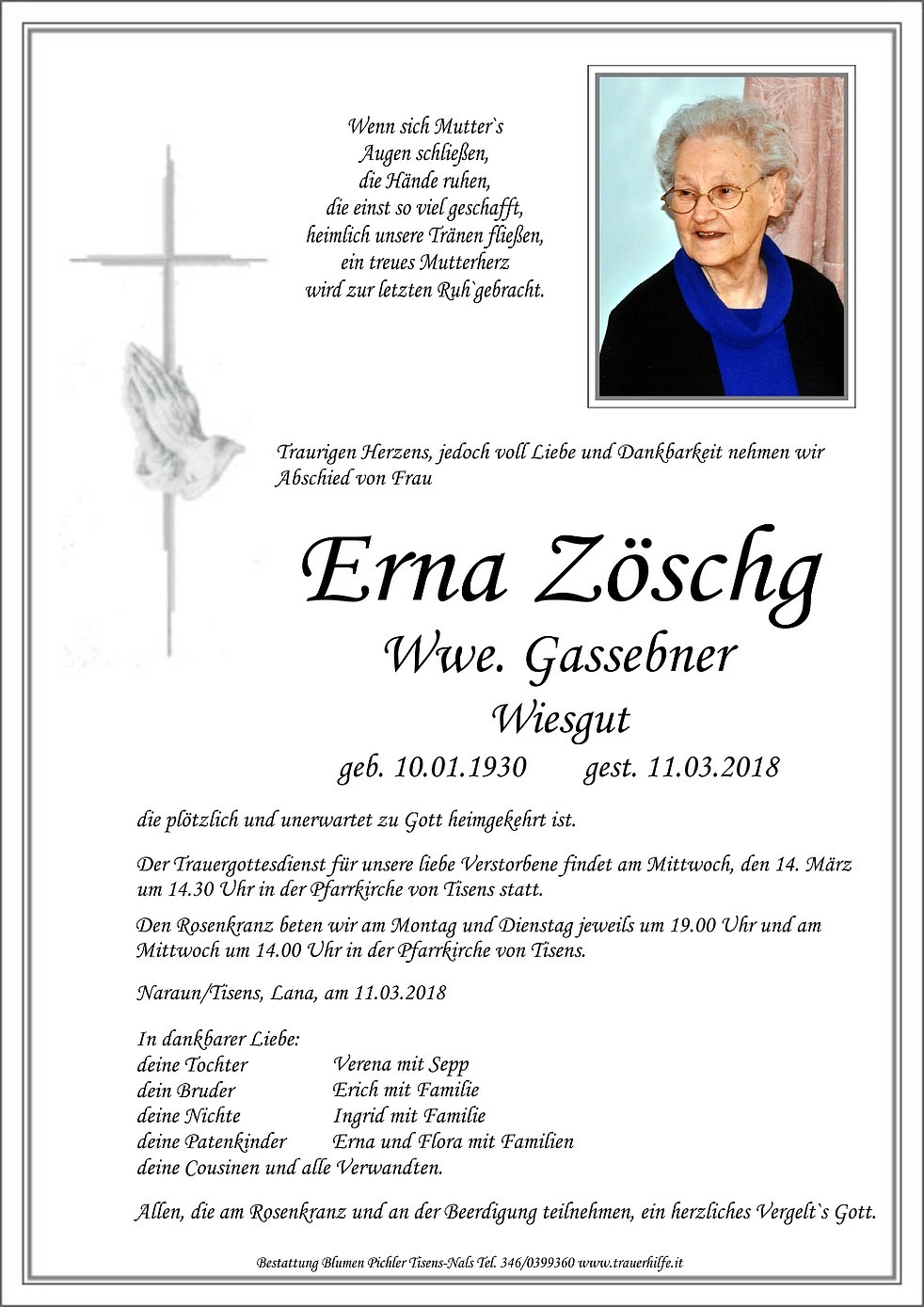 Der Trauergottesdienst für unsere liebe Verstorbene findet am Mittwoch, den 14. März