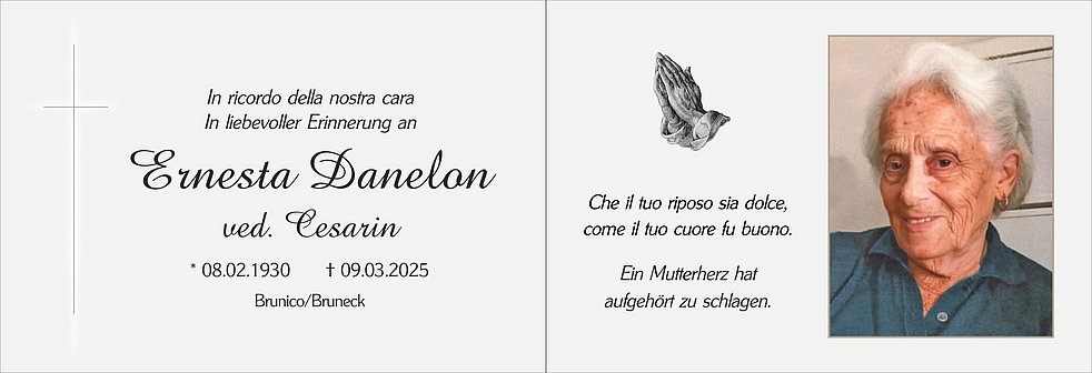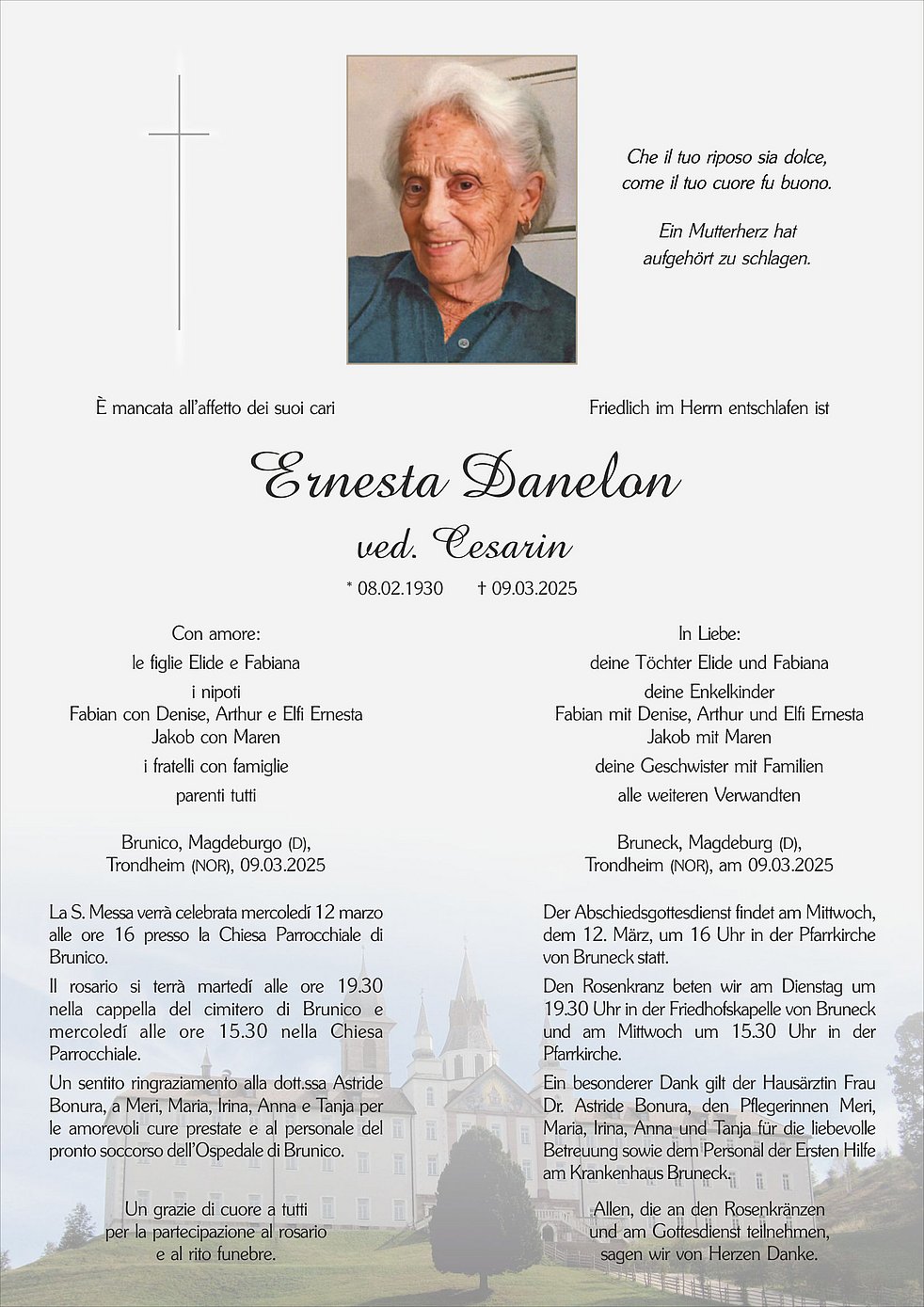 Ein besonderer Dank gilt der Hausärztin Frau Dr. Astride Bonura, den Pflegerinnen Meri, Maria, Irina, Anna und Tanja für die liebevolle Betreuung sowie dem Personal der Ersten Hilfe am Krankenhaus Bruneck.