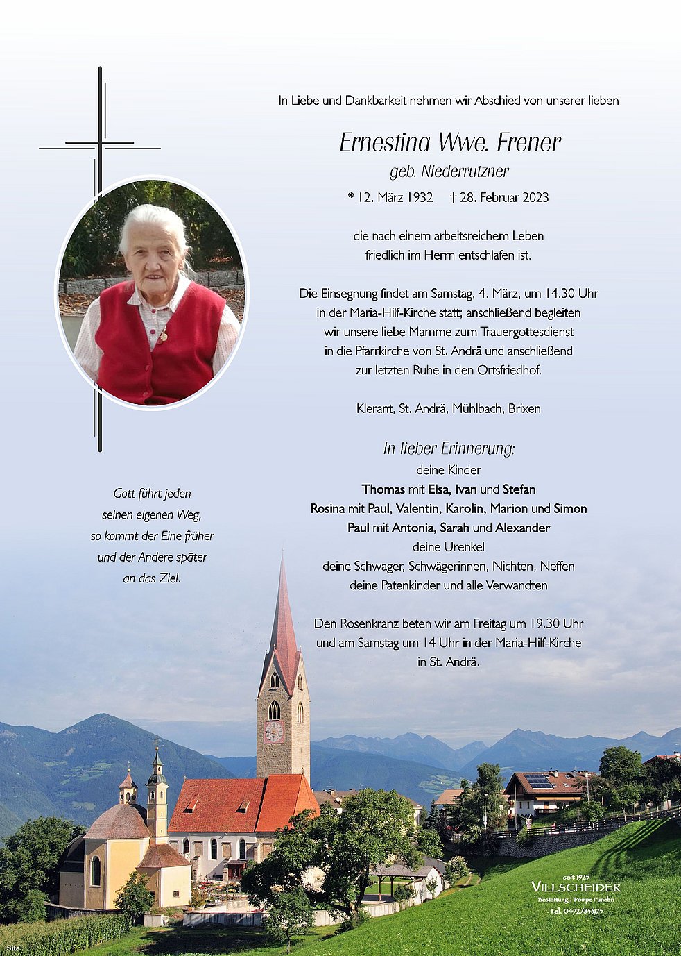 Wenn ihr mich sucht, sucht mich in Eurem Herzen. Habe ich dort eine Bleibe gefunden, lebe ich in Euch weiter. Unser Aufrichtiges Beileid, lieber Thomas, Lieber Ivan und Stefan, und allen Angehörigen vor allem auch Dir liebe Elsa, da, Du immer auf die Ernestina geschaut hast und sie auch gepflegt hast.