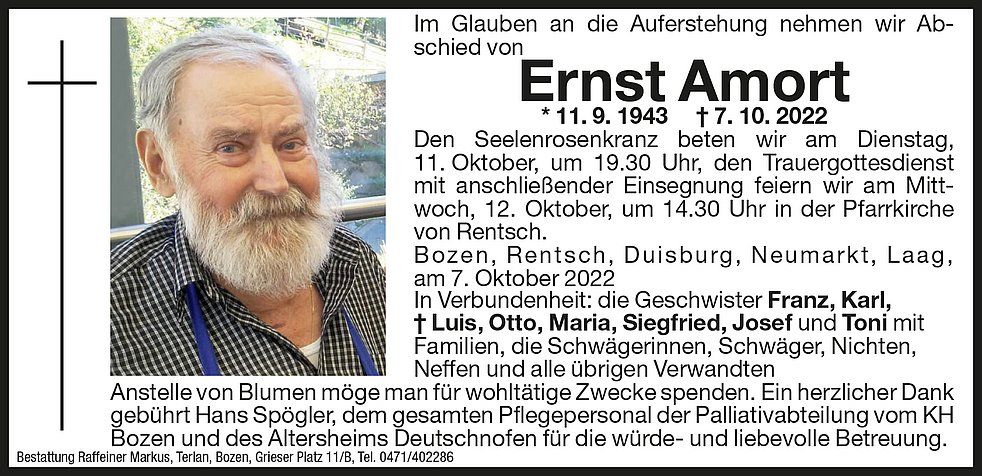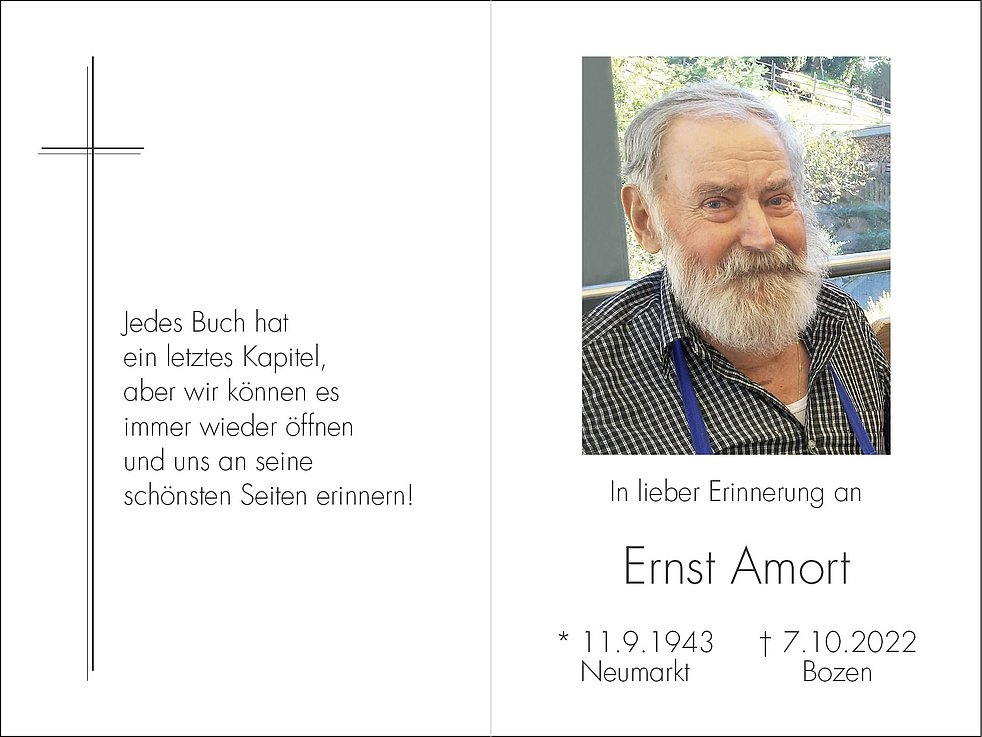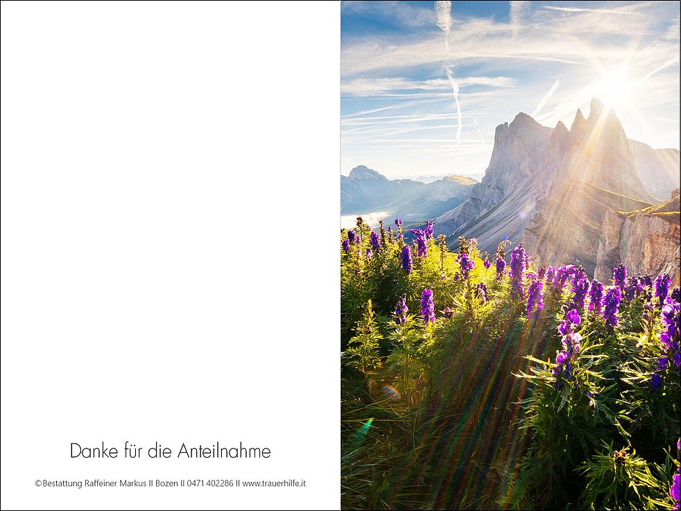 Ein weiterer Dank gilt dem gesamten Pflegepersonal der Palliativabteilung vom KH-Bozen und im Besonderen des Altersheims Deutschnofen für die würde- und liebevolle Betreuung.