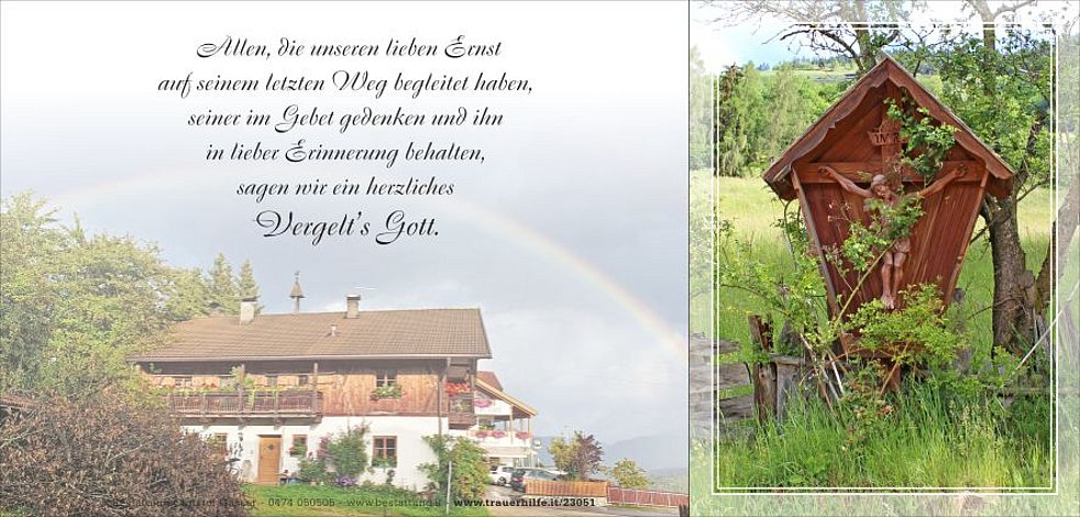 Ein besonderer Dank gilt dem ehemaligen Hausarzt Herrn Dr. Oswald Thalmann, dem Hausarzt Herrn Dr. Elia Maglia, dem Team vom Sanitäts- und Sozialsprengel und allen vom Hauspflegedienst.