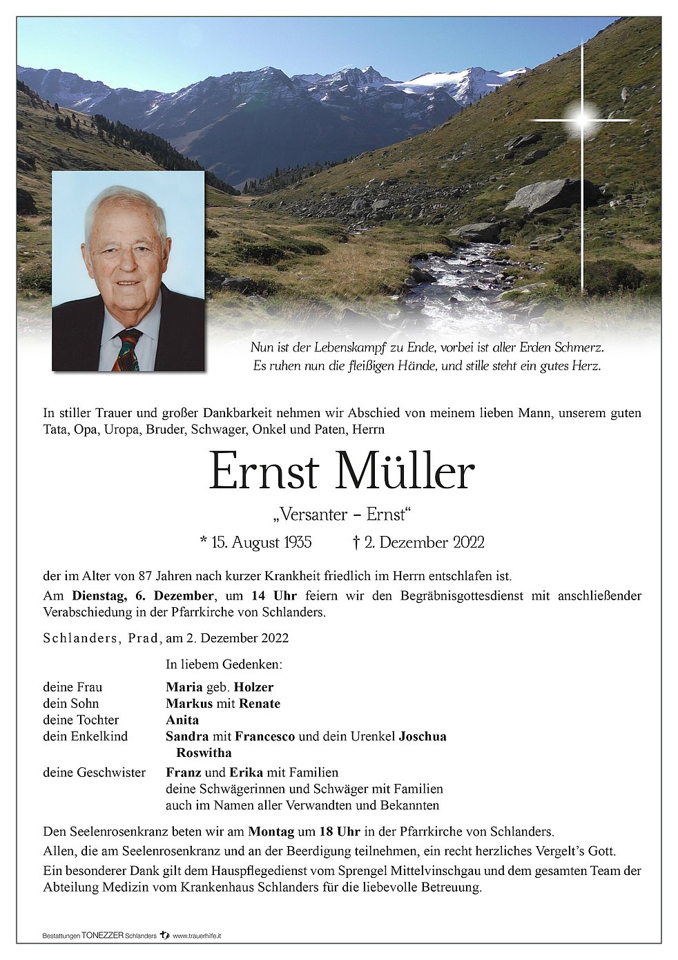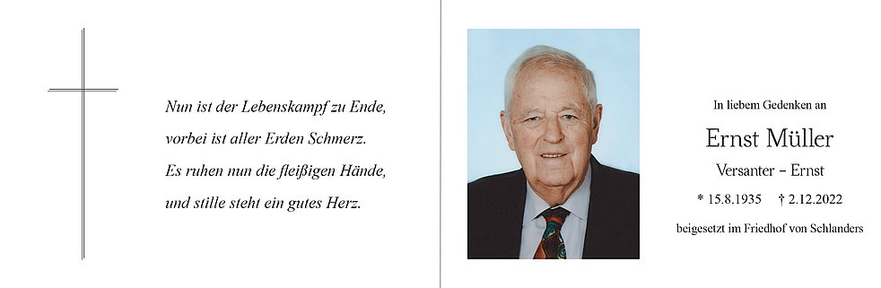 Am Dienstag, 6. Dezember, um 14 Uhr feiern wir den Begräbnisgottesdienst mit anschließender Verabschiedung in der Pfarrkirche von Schlanders.