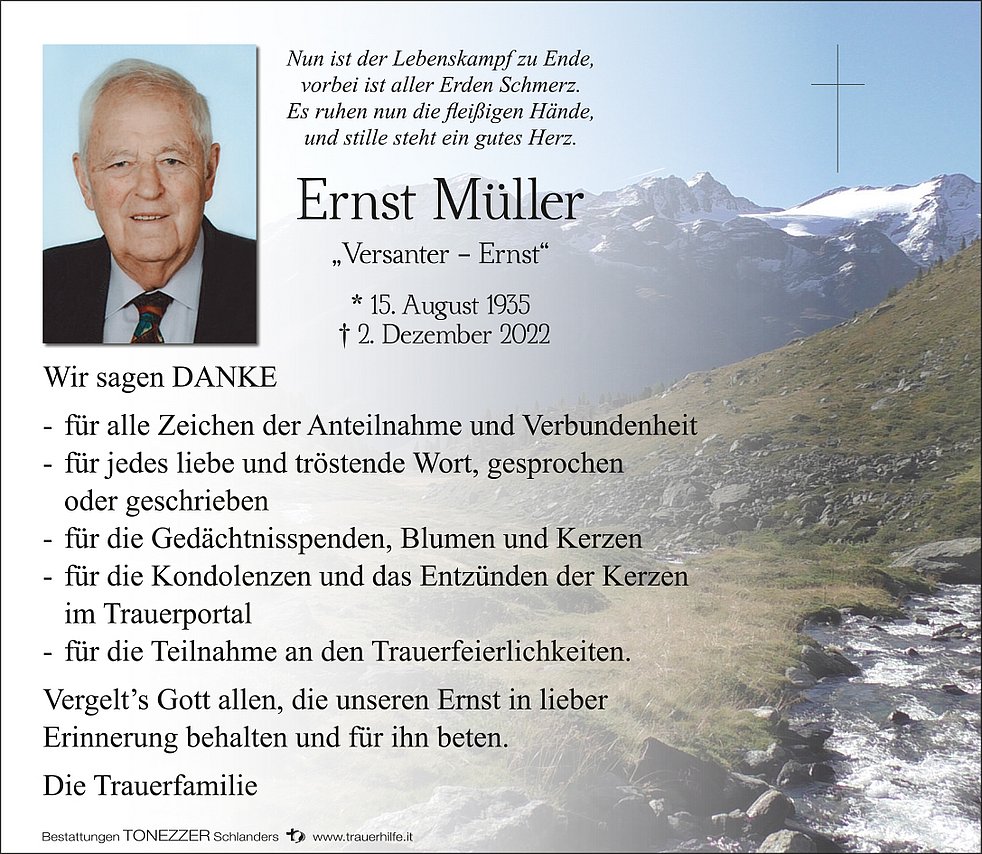 Ein besonderer Dank gilt dem Hauspflegedienst vom Sprengel Mittelvinschgau und dem gesamten Team der Abteilung Medizin vom Krankenhaus Schlanders für die liebevolle Betreuung.