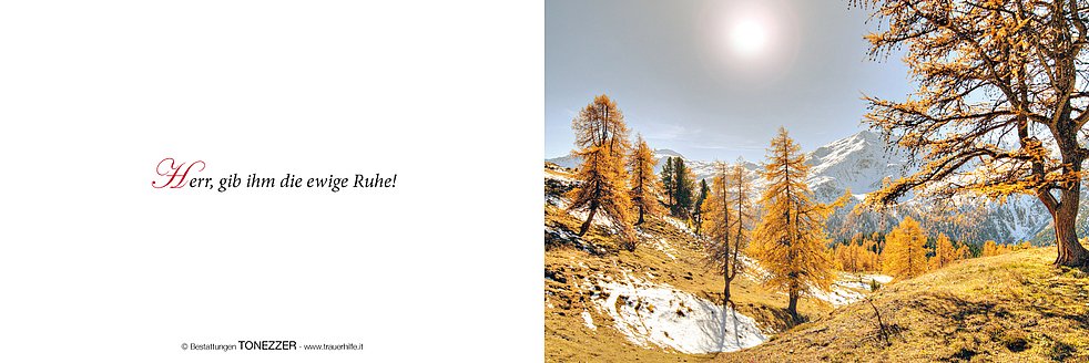 Am Dienstag, 14. November, um 13.30 Uhr beten wir den Rosenkranz in der Pfarrkirche von Goldrain/Tiss und um 14 Uhr feiern wir den Begräbnisgottesdienst mit anschließender Verabschiedung.