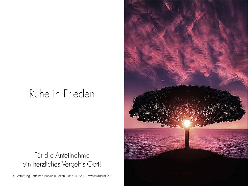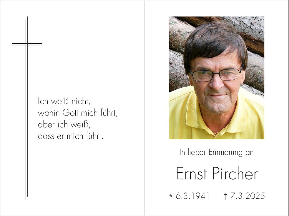Die Verabschiedung unseres lieben Ernst findet am Freitag, den 14. März, um 14.30 Uhr in der Kapelle des Blindenzentrums St. Raphael Gries/Bozen statt.