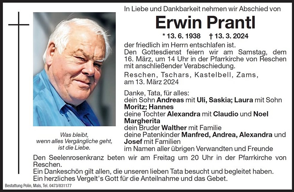 in der Pfarrkirche von Reschen mit anschließender Verabschiedung.