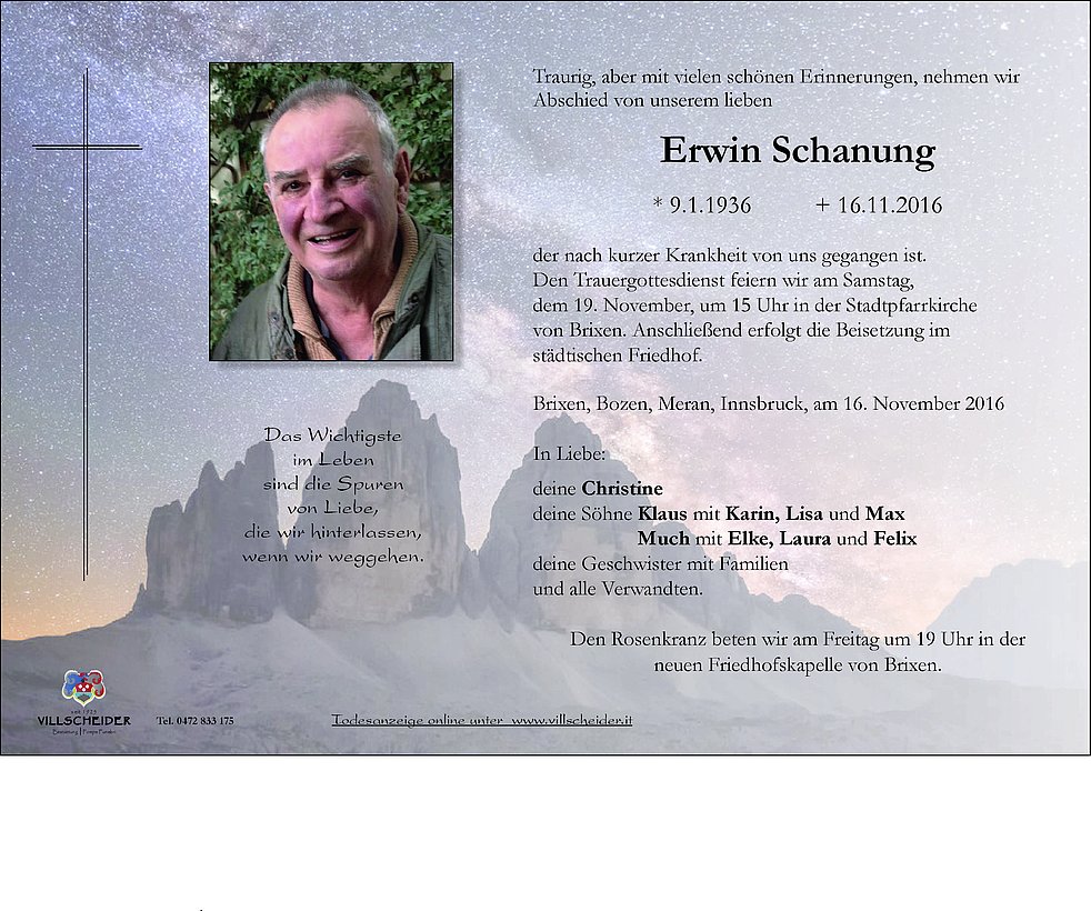 von Brixen. Anschließend erfolgt die Beisetzung im
