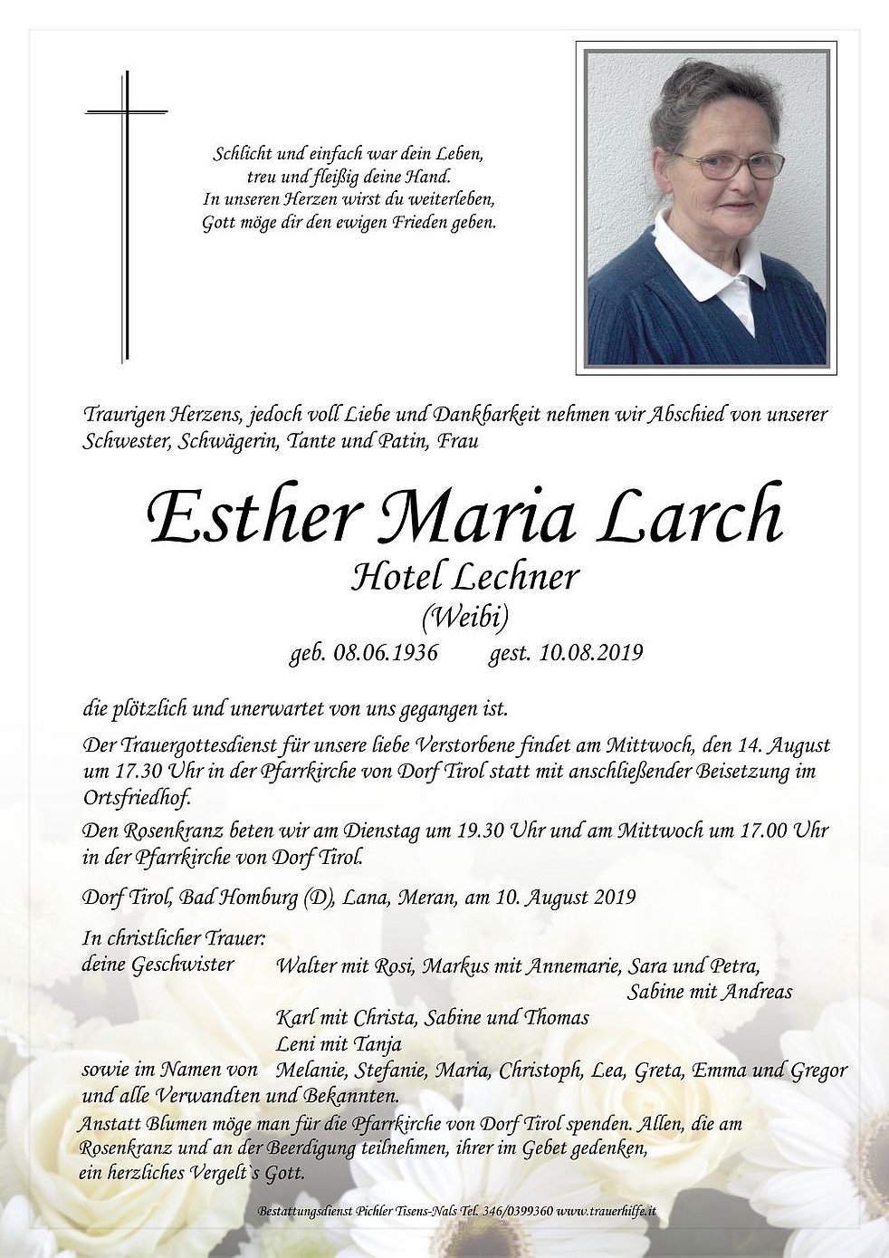 Begräbnisgottesdienst: 14.08. - 17:30 Uhr Pfarrkirche von Dorf Tirol