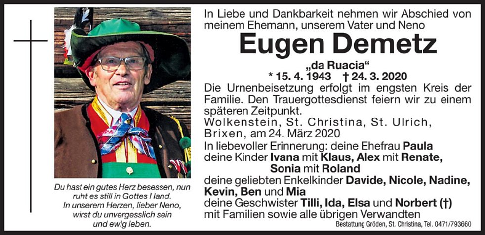 Wolkenstein, St. Christina, St. Ulrich, Brixen, am 24.März 2020