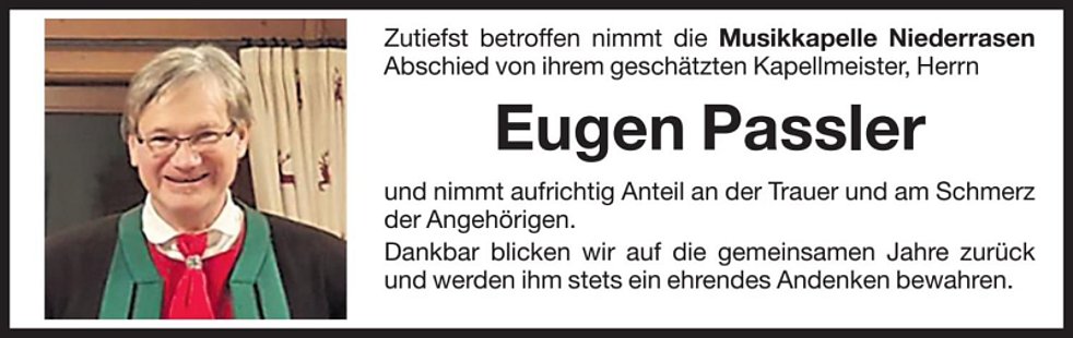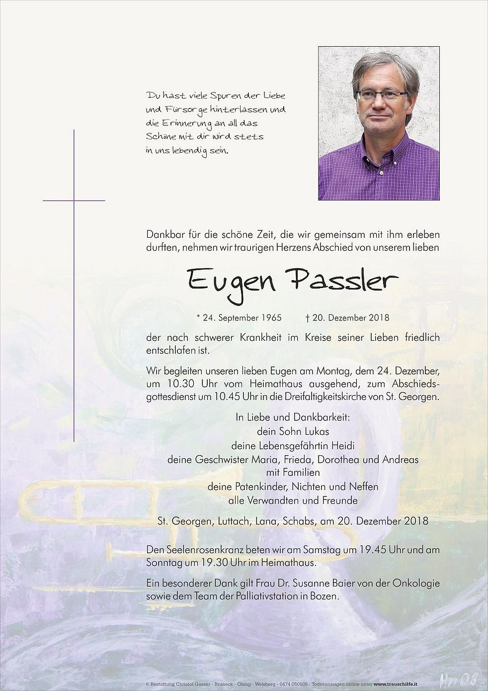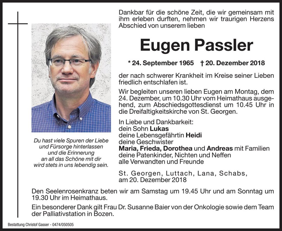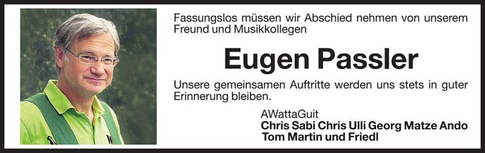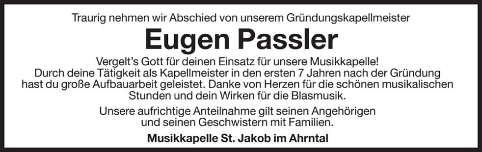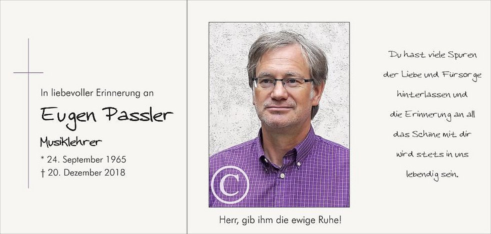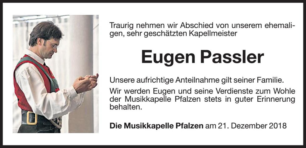 Wir begleiten unseren lieben Eugen am Montag, dem 24. Dezember, um 10.30 Uhr vom Heimathaus ausgehend, zum Abschieds-gottesdienst um 10.45 Uhr in die Dreifaltigkeitskirche von St. Georgen.